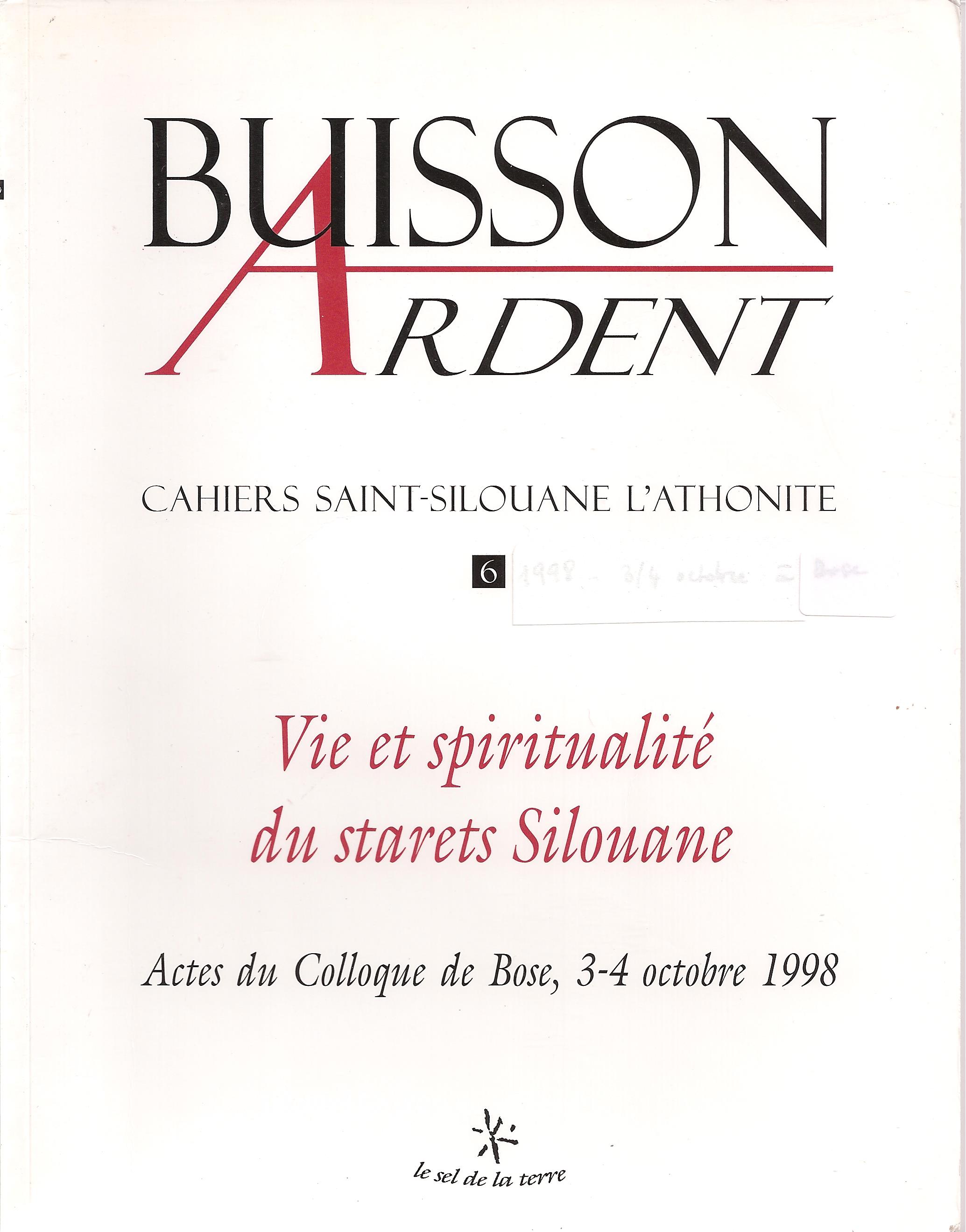 Le N° 6 (année 2000) de la revue de notre association, "Buisson Ardent" reprend les actes du colloque de Bose des 3-4 octobre 1998 ayant pour le thème : "Vie et spiritualité du starets Silouane. »